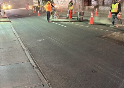 Concrete sidewalks and asphaltic precast panels were restored, and a sophisticated stoplog system was incorporated to provide adaptable flood defense at all access openings, per Specification 10YA and contract drawings. Yard drainage improvements were implemented to enhance stormwater management, including the removal of outfall structures and catch basins along Newtown Creek. Work zone traffic control measures were established to maintain safety and minimize disruption, as shown on the contract drawings.