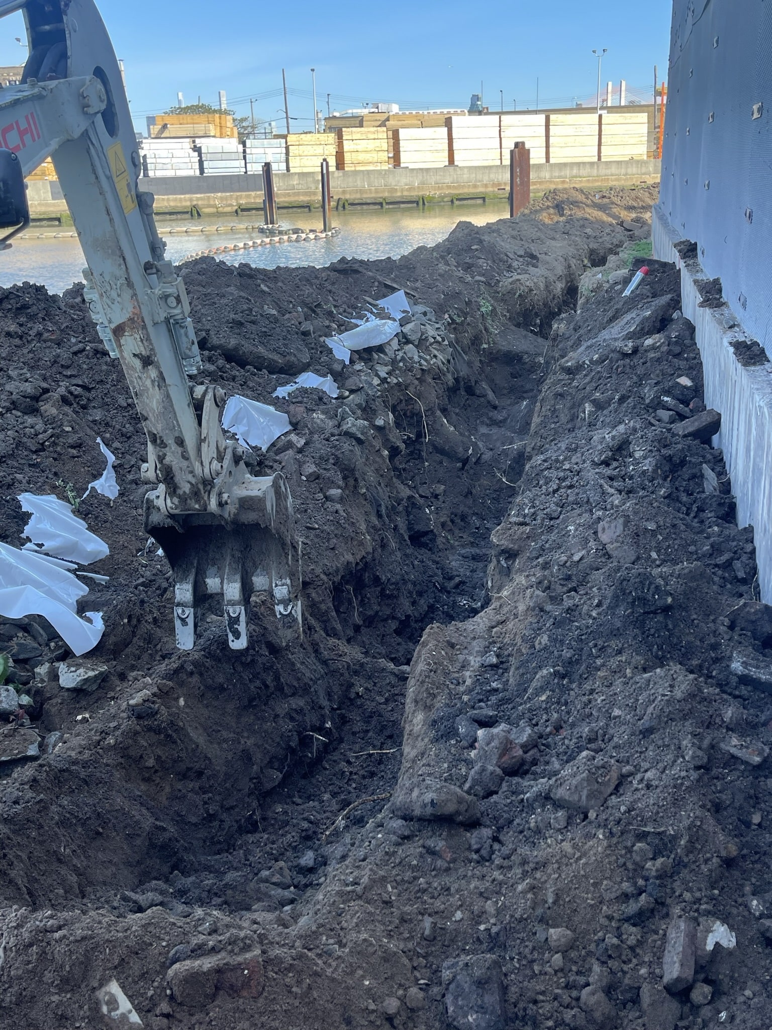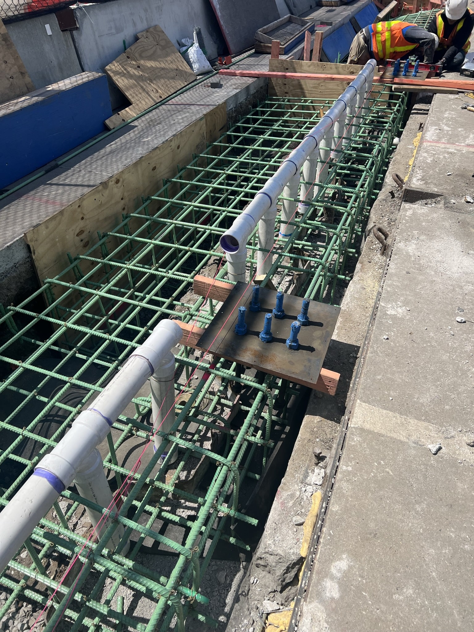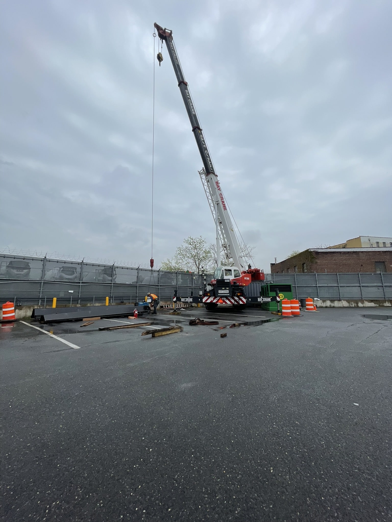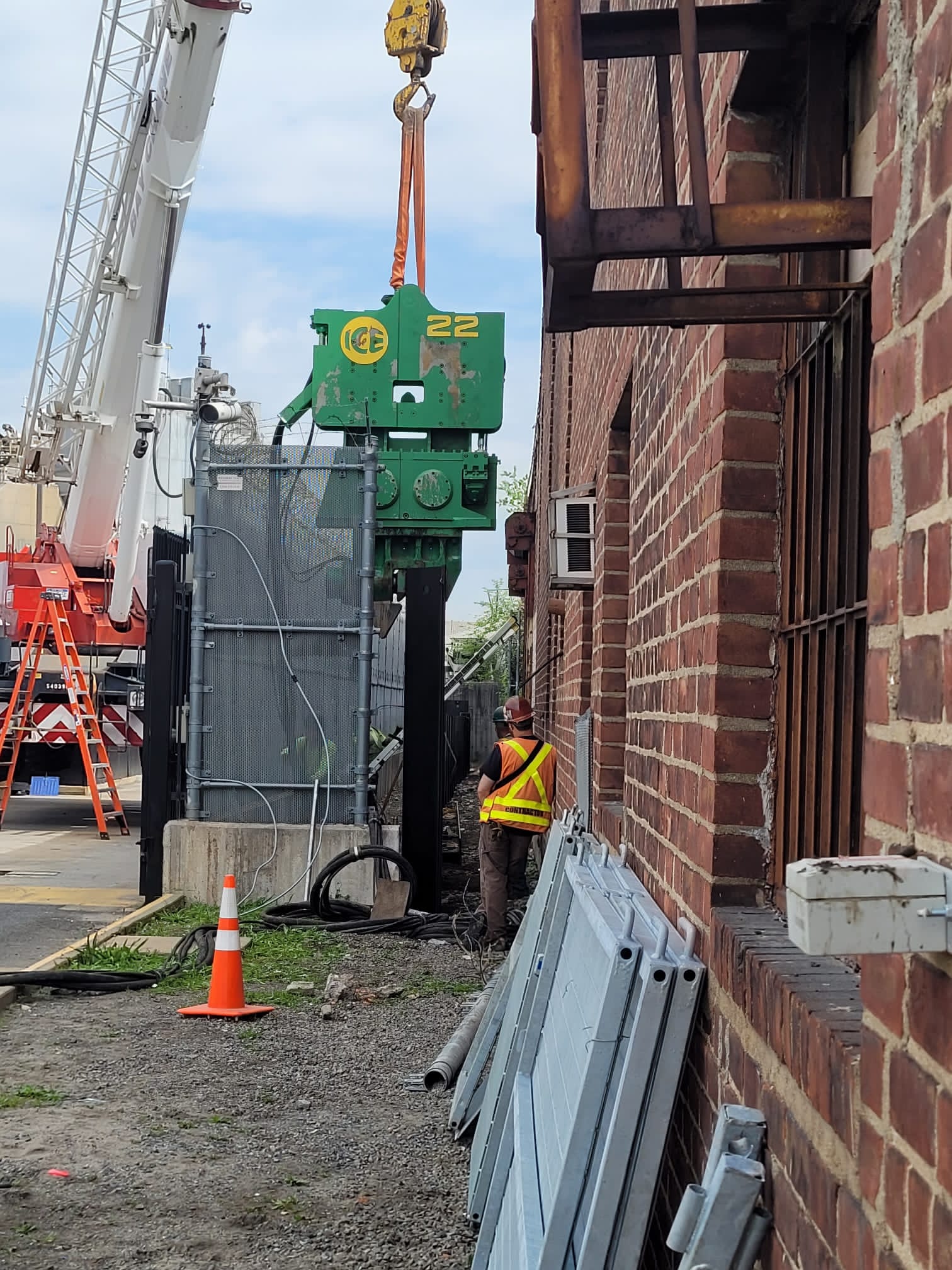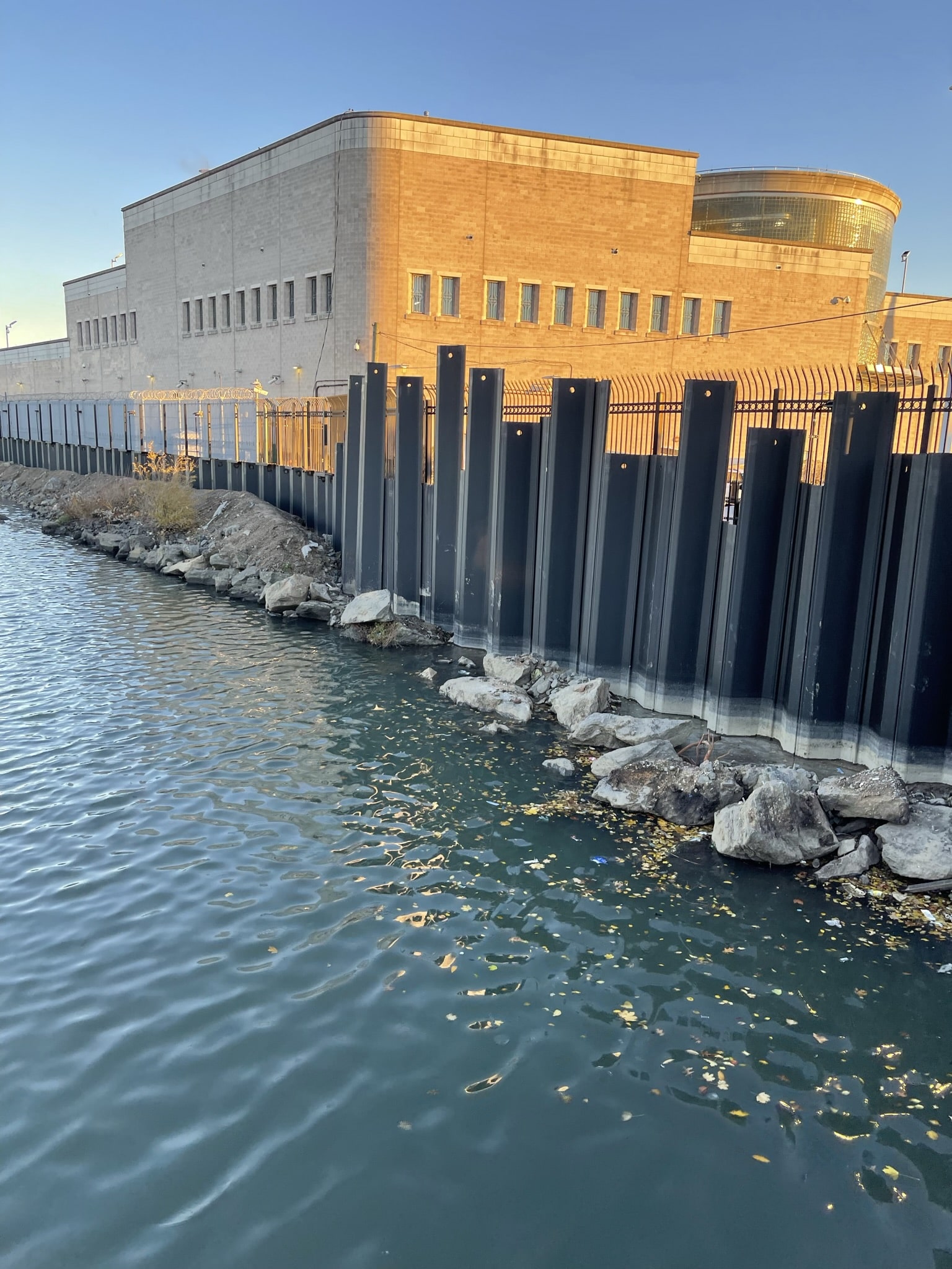 The scope of work included a wide range of architectural, civil, structural, mechanical, electrical, and drainage system enhancements. Central to the project was the construction of a new flood wall system around the perimeter, incorporating precast concrete panels, sheet piles, and H-piles to form a robust protective barrier. The structural foundation of this flood wall required specialized pile cap foundations to support the H-pile system along Metropolitan Avenue, ensuring long-term stability against high water levels. Additional work included the installation of two pump stations in the facility yard, designed to manage site drainage and pavement water control as specified in contract drawings.
