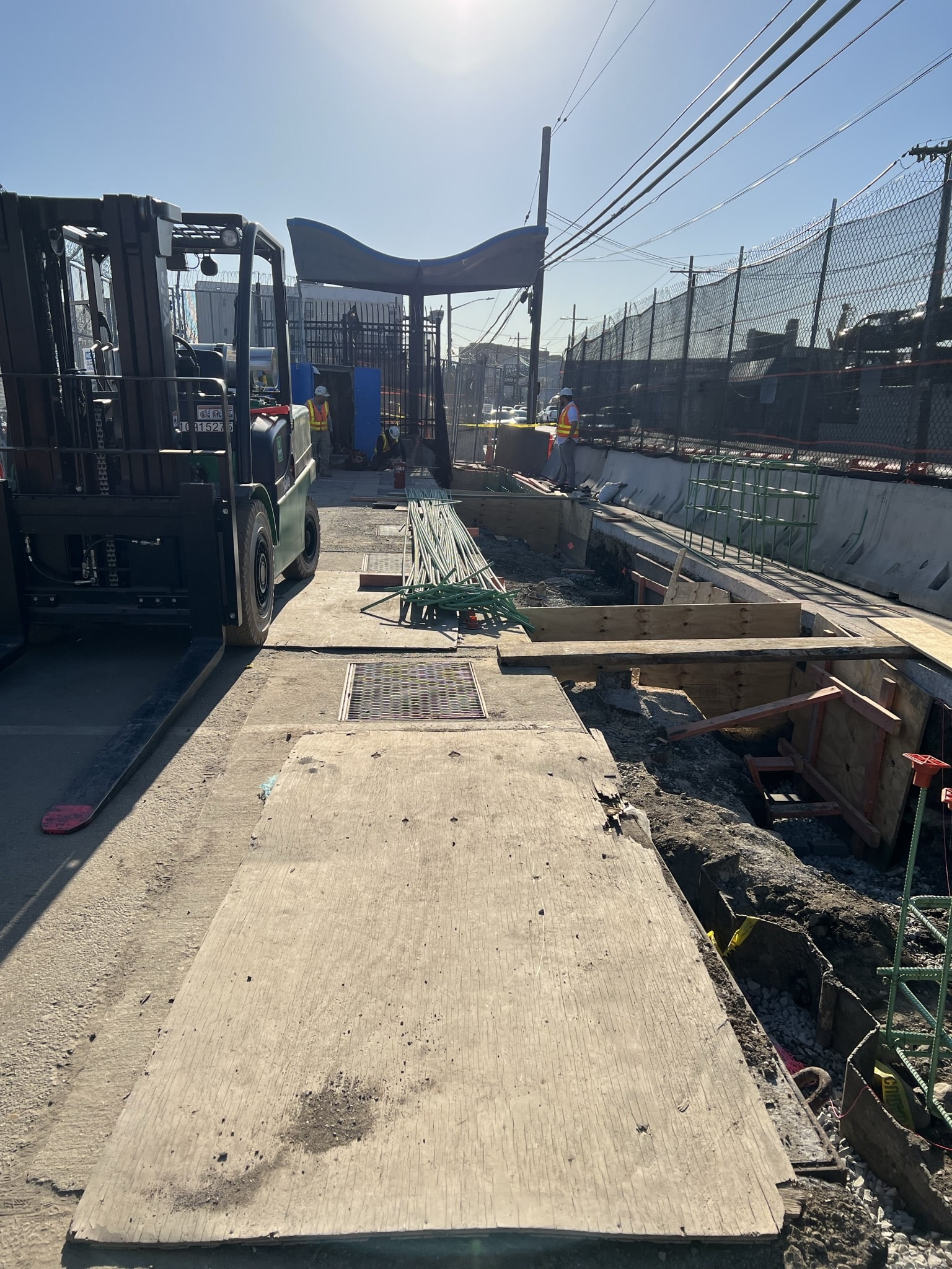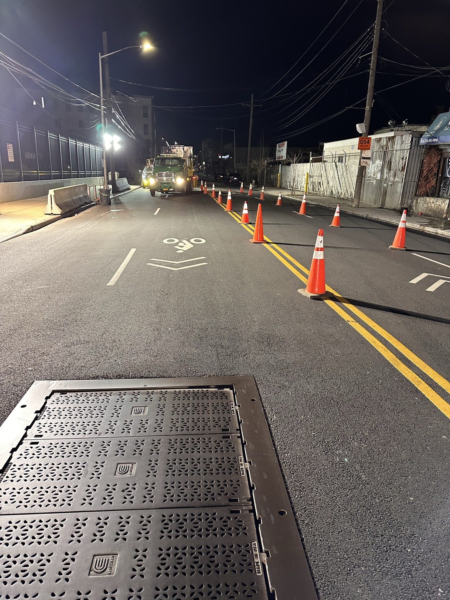 Security and operational functionality were also priorities, with the installation of new perimeter security fencing with security strips, floodlights along Newtown Creek, and a wrought iron-style aluminum fencing system with a concrete base to enhance both safety and aesthetics. The electrical scope included comprehensive details for the new pump stations and relocation of all affected utility crossings to support uninterrupted facility operations.