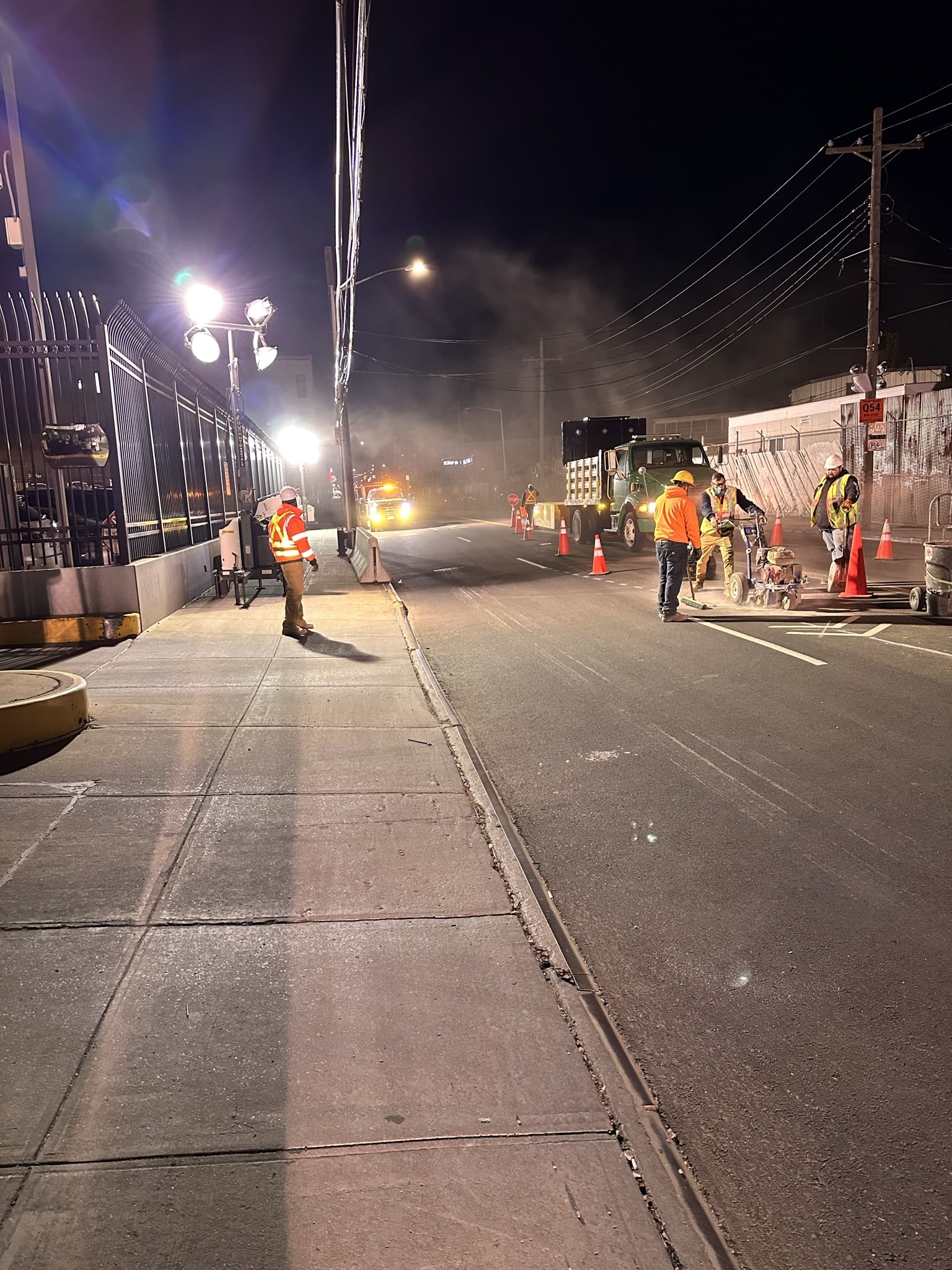 Concrete sidewalks and asphaltic precast panels were restored, and a sophisticated stoplog system was incorporated to provide adaptable flood defense at all access openings, per Specification 10YA and contract drawings. Yard drainage improvements were implemented to enhance stormwater management, including the removal of outfall structures and catch basins along Newtown Creek. Work zone traffic control measures were established to maintain safety and minimize disruption, as shown on the contract drawings.